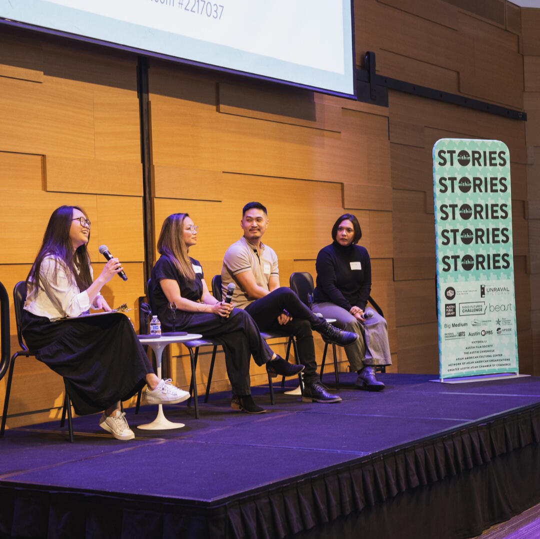 The AAPI Storytelling Summit was a community event I coordinated in collaboration with the Austin Asian American Film Festival.With a team of three Program Coordinators, we curated a series of sessions to equip the Asian American community with tools to tell their own stories.In addition to developing our programming, I moderated a panel titled "How do we tell AAPI stories?" which invited three local AAPI leaders (Vy Ngo, Minh Vu, and Erica Deiparine-Sugars) to speak on their experiences in art and advocacy.Photo by Kelly Zhu.