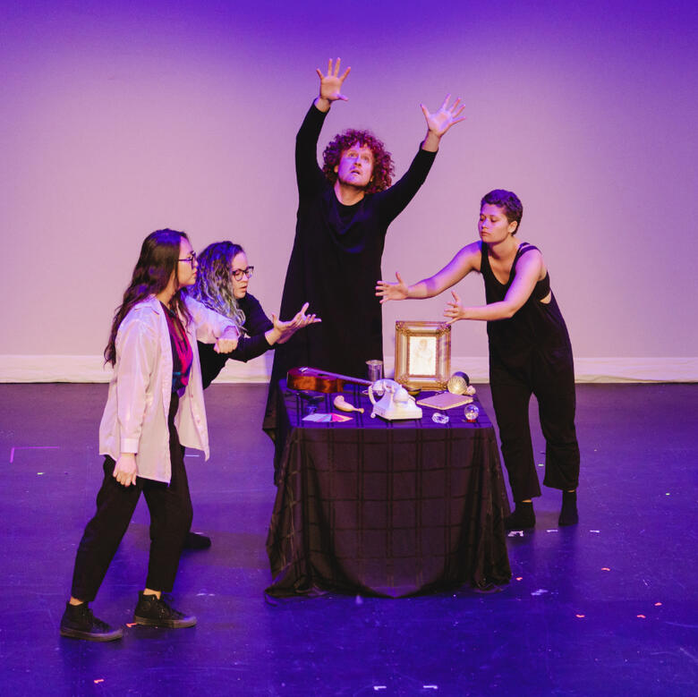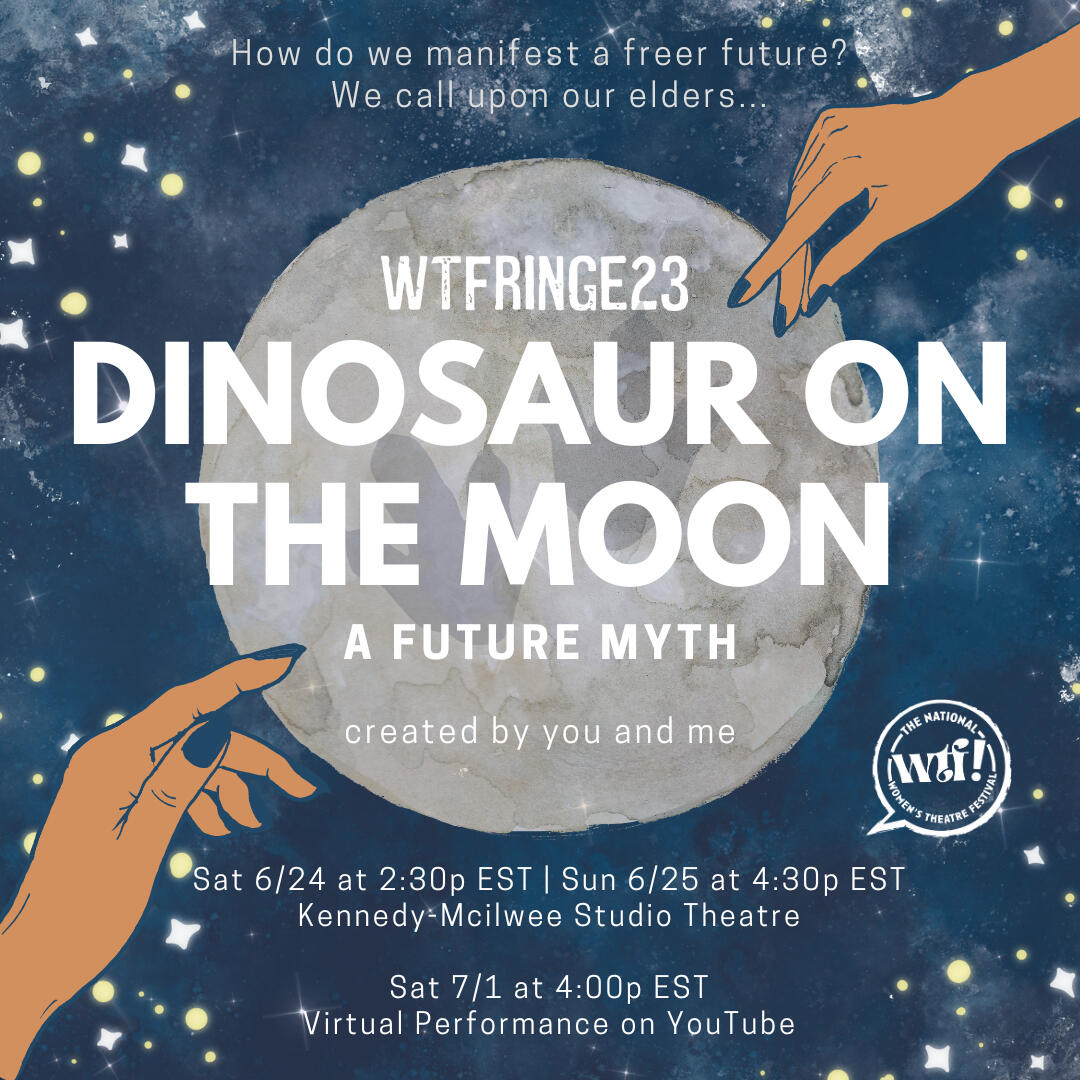 Dinosaur on the Moon is a devised theatrical experiment that asks: what would our elders say to us if they were with here us today?As a part of the WTFringe Lab cohort, my team and I collectively devised, wrote, directed, produced, and performed together to create Dinosaur on the Moon. (As in, all five of us did all five of those things! - breaking the traditional single director/playwright model often seen in theatre.)I was also our show's graphic designer and created our program art and playbill.Dinosaur on the Moon won Fringiest Production (Jury) and Best of Overall Production (Jury) at the National Women's Theatre Festival.